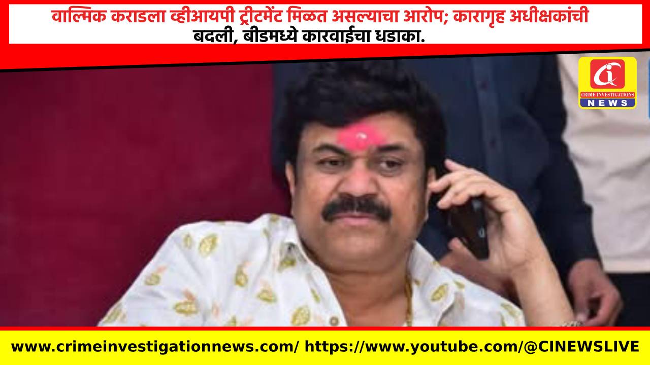 बीडमध्ये संतोष देशमुख हत्या प्रकरणात वाल्मिक कराडवर गंभीर आरोप आहेत, त्याला कारागृहात व्हीआयपी ट्रीटमेंट मिळत असल्याचा आरोप आहे. आता त्यामध्येच कारागृह अधीक्षक बक्सार मुलानी यांची बदली झाली असून त्यांच्या जागी रामराजे चांदणे रुजू होणार आहेत.संतोष देशमुख हत्या प्रकरणात वाल्मिक कराडवर गंभीर आरोप केली जात आहेत. वाल्मिक कराडच हत्येचा मास्टरमाइंड असल्याचा आरोप आहे. संतोष देशमुख हत्या प्रकरणातील एक आरोपी अजूनही फरार आहे. इतर आरोपी कोठडीत आहे. मात्र, या हत्येचा आणि आपला काहीही संबंध नसल्याचे कराडकडून सांगितले जात आहे. वाल्मिक कराड हा सध्या बीडच्या कारागृहात आहे. देशमुखांच्या हत्येनंतर धनंजय मुंडेंच्या राजीनाम्याची सतत मागणी केली जात होती. शेवटी धनंजय मुंडेंनी आपला राजीनामा दिला आहे. या हत्येतील दोषींना फाशीची शिक्षा व्हावी, ही भूमिका आपली पहिल्या दिवसापासून असल्याचे धनंजय मुंडेंनी म्हटले. आता वाल्मिक कराडला कारागृहात व्हीआयपी ट्रीटमेंट मिळत असल्याचा दावा केला जात आहे.