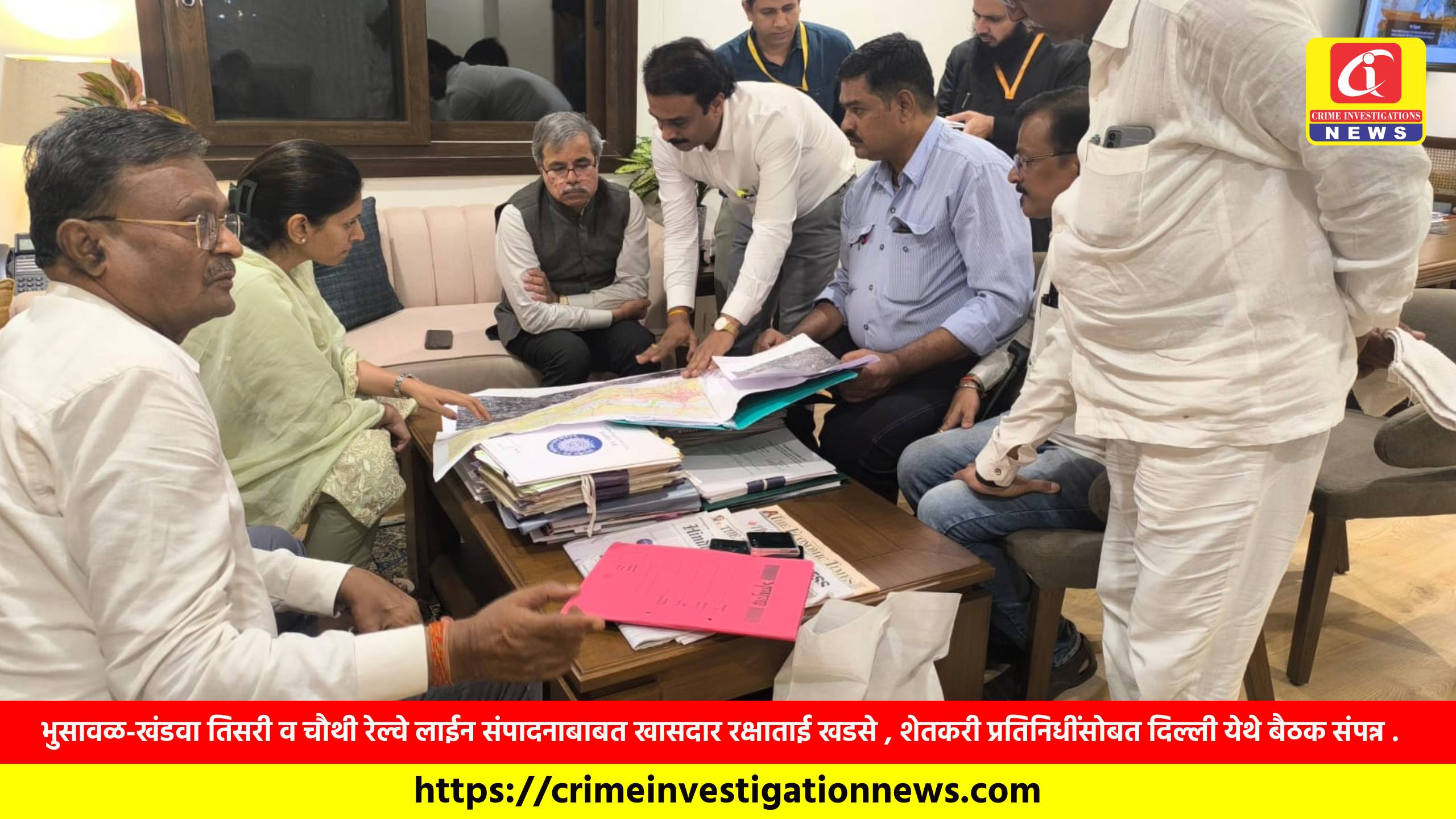 भुसावळ-खंडवा तिसरी व चौथी रेल्वे लाईन संपादनाबाबत खासदार रक्षाताई खडसे , शेतकरी प्रतिनिधींसोबत दिल्ली येथे बैठक संपन्न .