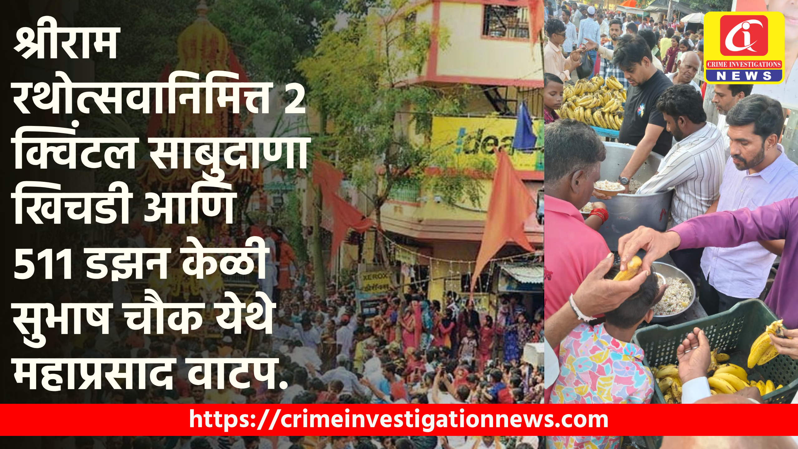महाराष्ट्र नवनिर्माण सेना व महर्षी श्रृँग ऋषी बहुउद्देशीय संस्था यांच्या संयुक्त विदमानाने श्रीराम रथोत्सवानिमित्त २ कुंटल साबुदाणा खिचडी आणि ५११ डझन केळी सुभाष चौक येथे महाप्रसाद वाटप करण्यात आले.
