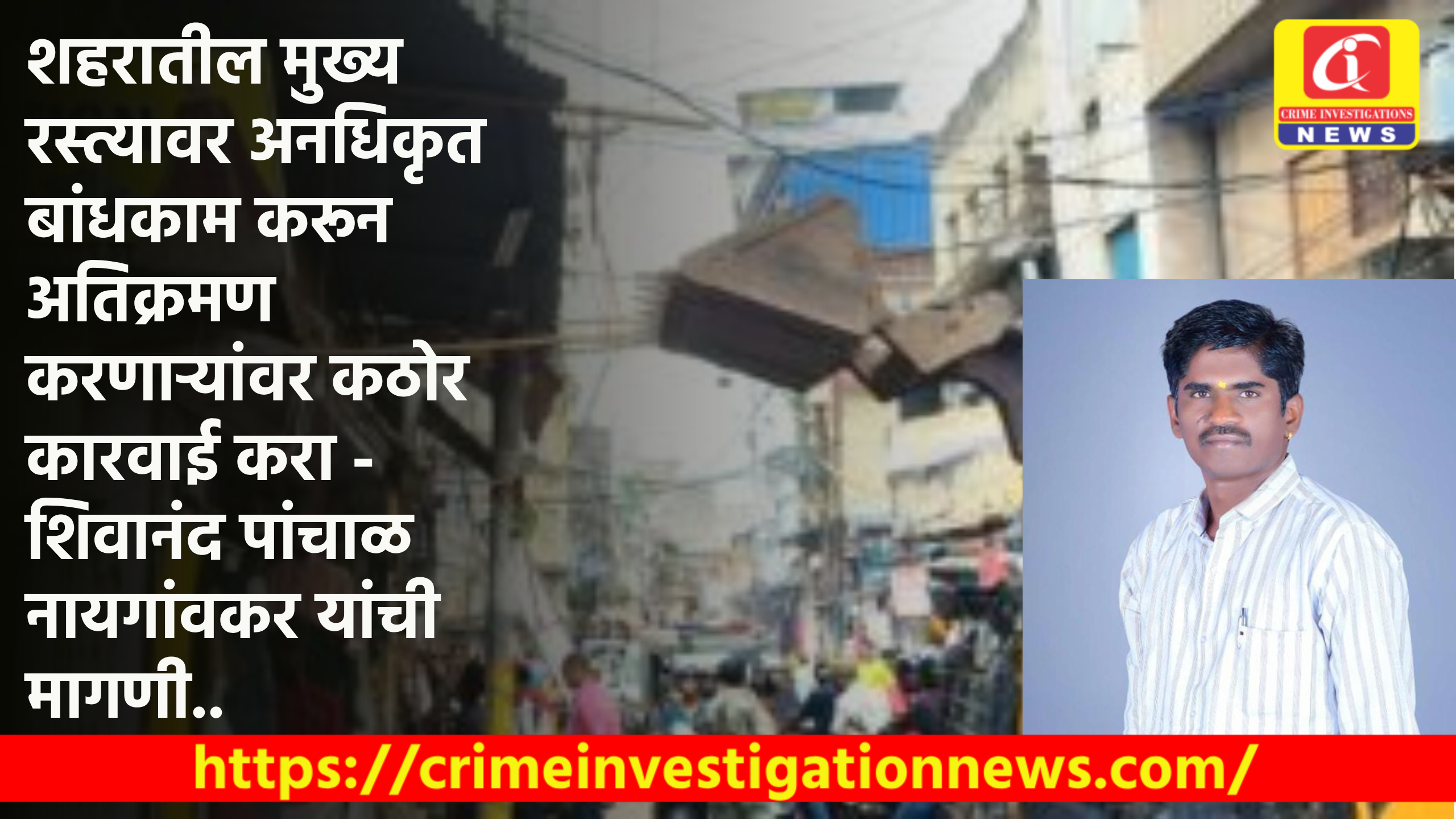 शहरातील मुख्य रस्त्यावर अनधिकृत बांधकाम करून अतिक्रमण करणाऱ्यांवर कठोर कारवाई करा – शिवानंद पांचाळ नायगांवकर यांची मागणी..
