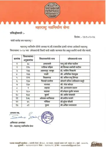मनसेकडून तिसऱ्या यादीत 13 उमेदवारांची घोषणा
