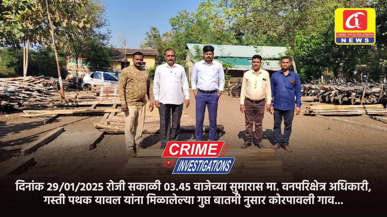 दिनांक 29/01/2025 रोजी सकाळी 03.45 वाजेच्या सुमारास मा. वनपरिक्षेत्र अधिकारी, गस्ती पथक यावल यांना मिळालेल्या गुप्त बातमी नुसार कोरपावली गाव परिसरात गस्त करून तपास केला असता पाला पाचोळ्यात लपवलेले साग कट साईज नग – 6 घ. मी. 0.112 माल किम्मत ₹ 2266/- मिळून आले. सदर गुन्हे कामी वनपाल गस्ती पथक यांनी प्र. रि. क्रमांक 02/2025 दी. 29.01.2025 नोंदविला जप्त माल मुख्य विक्री केंद्र यावल येथे जमा केला.