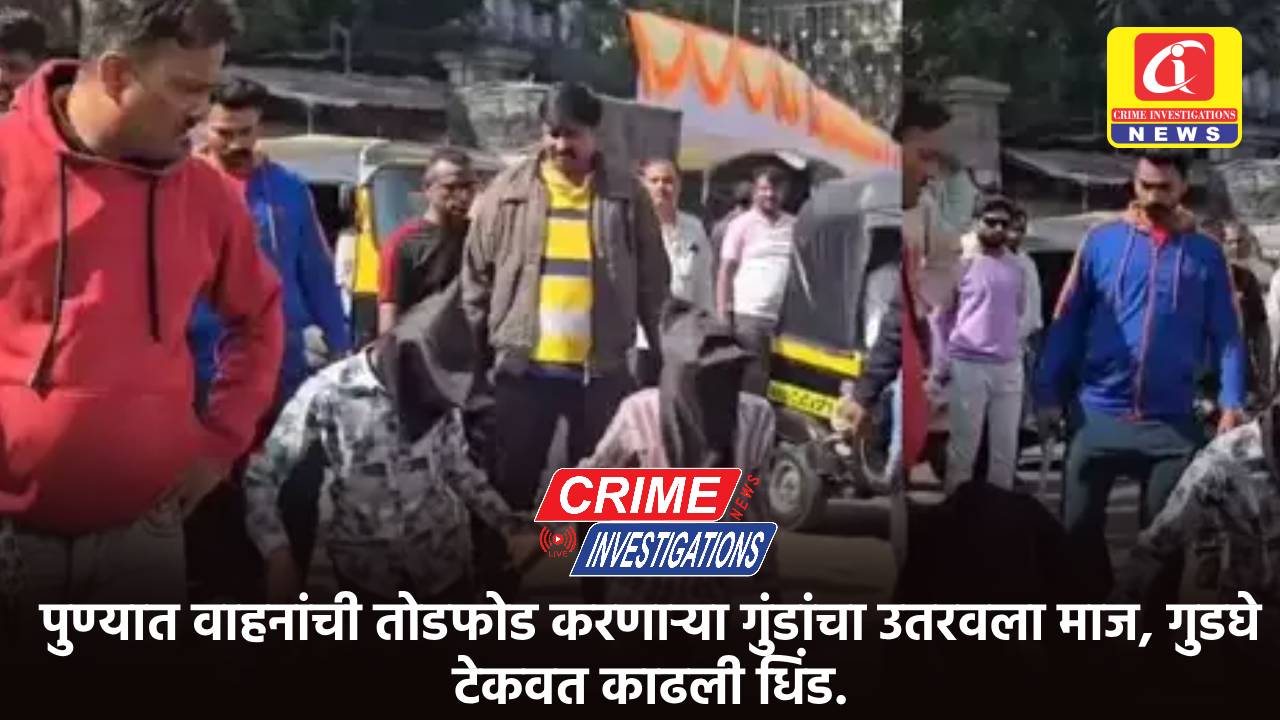 पुण्यात वाहनांची तोडफोड करणाऱ्या गुंडांची पोलिसांनी धिंड काढून अद्दल घडवली आहे. बिबेवाडीमध्ये 40 हून अधिक गाड्यांची तोडफोड करण्यात आली होती. पोलिसांनी आरोपींना अटक करून त्यांची धिंड काढली. आता याचे फोटो आणि व्हिडीओ सोशल मीडियावर तूफान व्हायरल होताना दिसत आहेत.