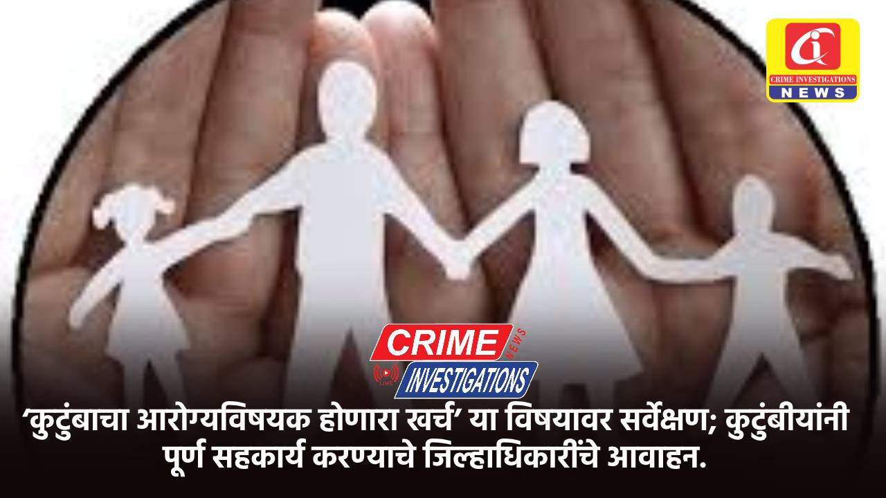 ‘कुटुंबाचा आरोग्यविषयक होणारा खर्च’ या विषयावर सर्वेक्षण; कुटुंबीयांनी पूर्ण सहकार्य करण्याचे जिल्हाधिकारींचे आवाहन. भारत सरकारच्या आधिपत्याखालील राष्ट्रीय सांख्यिकी कार्यालयाच्या धर्तीवर ‘कुटुंबाचा आरोग्यविषयक होणारा खर्च’ या विषयावर राष्ट्रीय पातळीवर होणा-या पाहणीत राज्यात अर्थ व सांख्यिकी संचालनालय सहभागी होत आहे. या पाहणीमध्ये फेब्रुवारी 2025 ते डिसेंबर 2025 ह्या कालावधीत माहिती गोळा करण्यात येणार आहे. निवड झालेल्या कुटुंबांकडून मागील 365 दिवसांमध्ये कुटुंबाच्या आरोग्यविषयक होणा-या खर्चाबाबत विस्तृत माहिती गोळा करण्यात येत आहे. या पाहणीचे निष्कर्ष आरोग्य सेवा क्षेत्रात सुधारणा तसेच केंद्र व राज्य शासनाला नियोजनासाठी व धोरणे राबविण्यासाठी उपयुक्त ठरणार आहे.