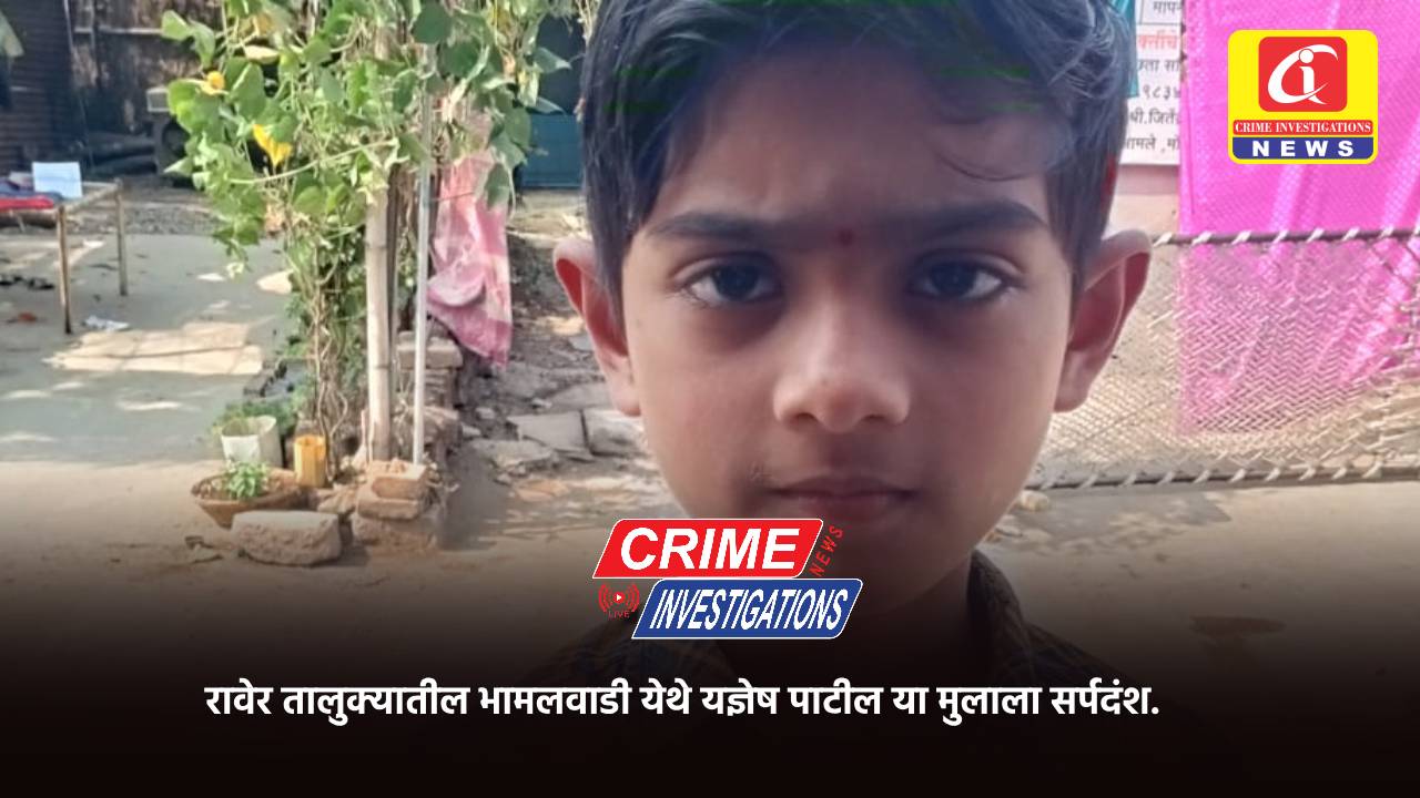 रावेर तालुक्यातील भामलवाडी गावातील यज्ञेष मनोज पाटील वय ८ वर्ष या लहान मुलाला गावामध्ये खेळत असताना त्याला सापाने चावा घेतला.