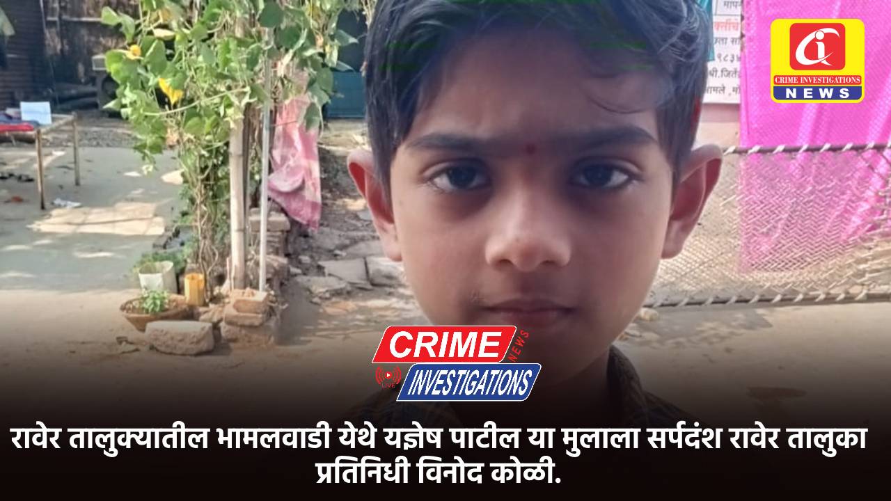 रावेर तालुक्यातील भामलवाडी येथे यज्ञेष पाटील या मुलाला सर्पदंश