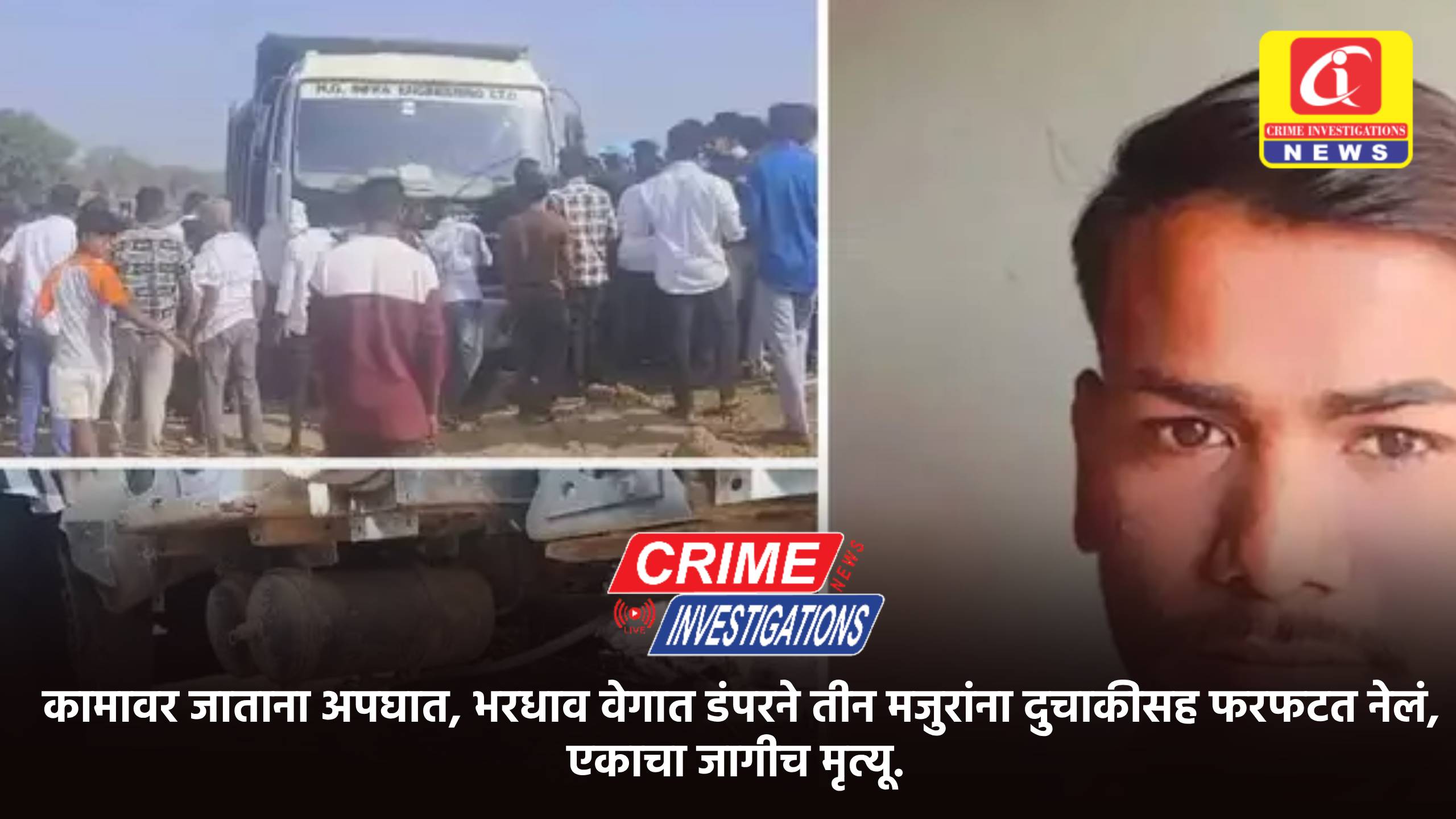 धुळ्यात भरधाव वेगात असलेल्या वाहतूक करणाऱ्या डंपरने एक दुचाकीला जोरदार धडक दिली. इतकंच नाही तर या डंपरने मजुरांना दुचाकीसह फरफटत नेलं. यामध्ये एकाचा जागीच मृत्यू झाला आहे.धुळे तालुक्यातील वरखेडी-आर्णी रस्त्यावर वरखेडी शिवारात भीषण अपघात झाल्याची माहिती आहे. धुळे-नरडाणा रेल्वे मार्गाच्या कामासाठी वापरला जाणारा डंपर आणि दुचाकी यांच्यात जोरदार धडक होऊन हा भीषण अपघात झाला. या अपघातात एका टाइल्स फिटिंग मजुराचा जागीच मृत्यू झाला आहे. तर, अन्य दोन जण गंभीर जखमी झाल्याची माहिती आहे.