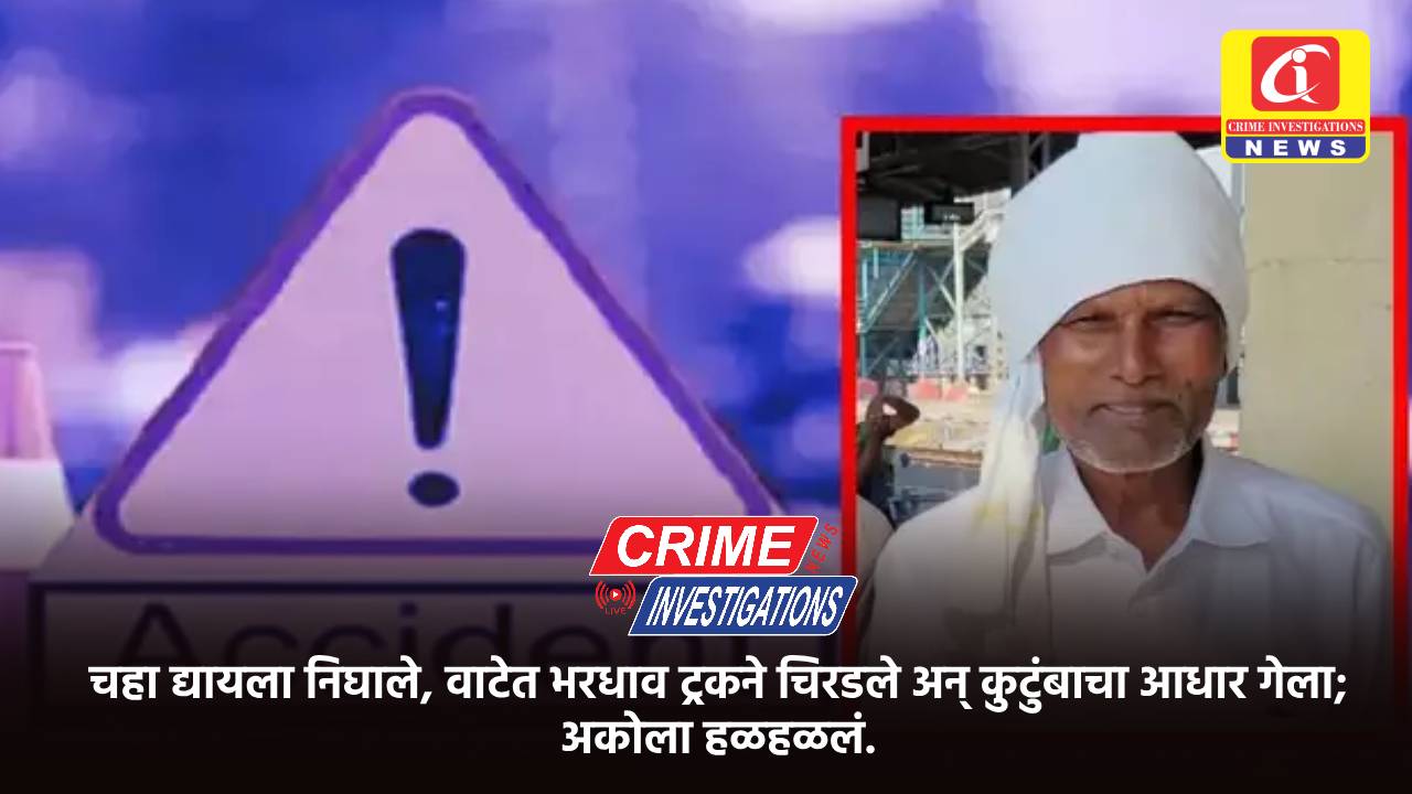 चहा द्यायला बाजारात जात असताना भरधाव ट्रकने धडक दिली आणि त्यात या चहा विक्रेत्याचा जागीच मृत्यू झाला आहे. या घटनेने परिसरात एकच खळबळ माजली आहे.अकोला शहरात अपघाताचे प्रमाण मोठ्या प्रमाणात वाढले आहे. अपघातात अनेकांचा मृत्यूही झाला आहे. अशीच घटना अकोला शहरातील जुने शहर पोलीस स्टेशन अंतर्गत येत असलेल्या नवीन किराणा मार्केटमध्ये घडली आहे. किराणा मार्केटमध्ये एका भरधाव ट्रकने धडक दिल्याने, एका वयोवृद्ध चहा विक्रेत्याचा जागीच मृत्यू झाल्याची दुर्दैवी घटना घडली आहे. या घटनेमुळे परिसरात हळहळ व्यक्त केली जात आहे. रामदास श्रीराम रत्नाळे असं वयोवृद्ध इसमाच नाव आहे. ते चहा देण्यासाठी जात असताना भरधाव ट्रकच्या धडकेत त्यांचा मृत्यू झाला आहे.