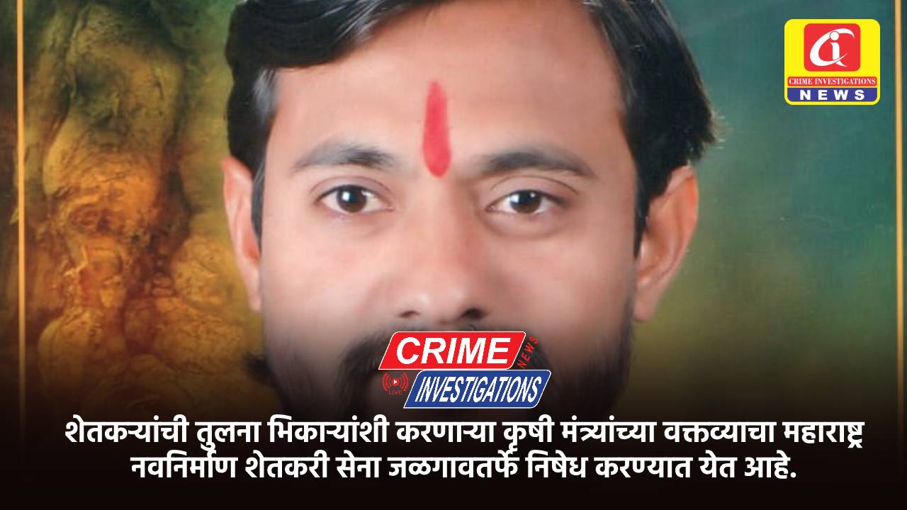 शेतकऱ्यांची तुलना भिकाऱ्यांशी करणाऱ्या कृषी मंत्र्यांच्या वक्तव्याचा महाराष्ट्र नवनिर्माण शेतकरी सेना जळगावतर्फे निषेध करण्यात येत आहे.महाराष्ट्र राज्याचे कृषिमंत्री माणिकराव कोकाटे यांनी शेतकऱ्यांची तुलना भिकाऱ्यांशी केलेल्या वक्तव्याचे महाराष्ट्र नवनिर्माण शेतकरी सेनेतर्फे निषेध करण्यात येत आहे. शेतकरी हा स्वतः काबाडकष्ट करतो स्वतः कमवतो आणि पूर्ण जगाचा पोशिंदा त्याला जी उपमा मिळालेली आहे ती कोणाच्या मेहरबानीने किंवा कोणत्याही सरकारने दिलेल्या योजनेतून मिळालेली नाही त्याचा तो हकदार आहे.
