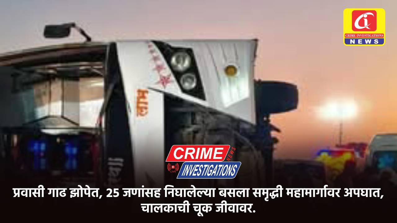 प्रवासी गाढ झोपेत, २५ जणांसह निघालेल्या बसला समृद्धी महामार्गावर अपघात, चालकाची चूक जीवावर.