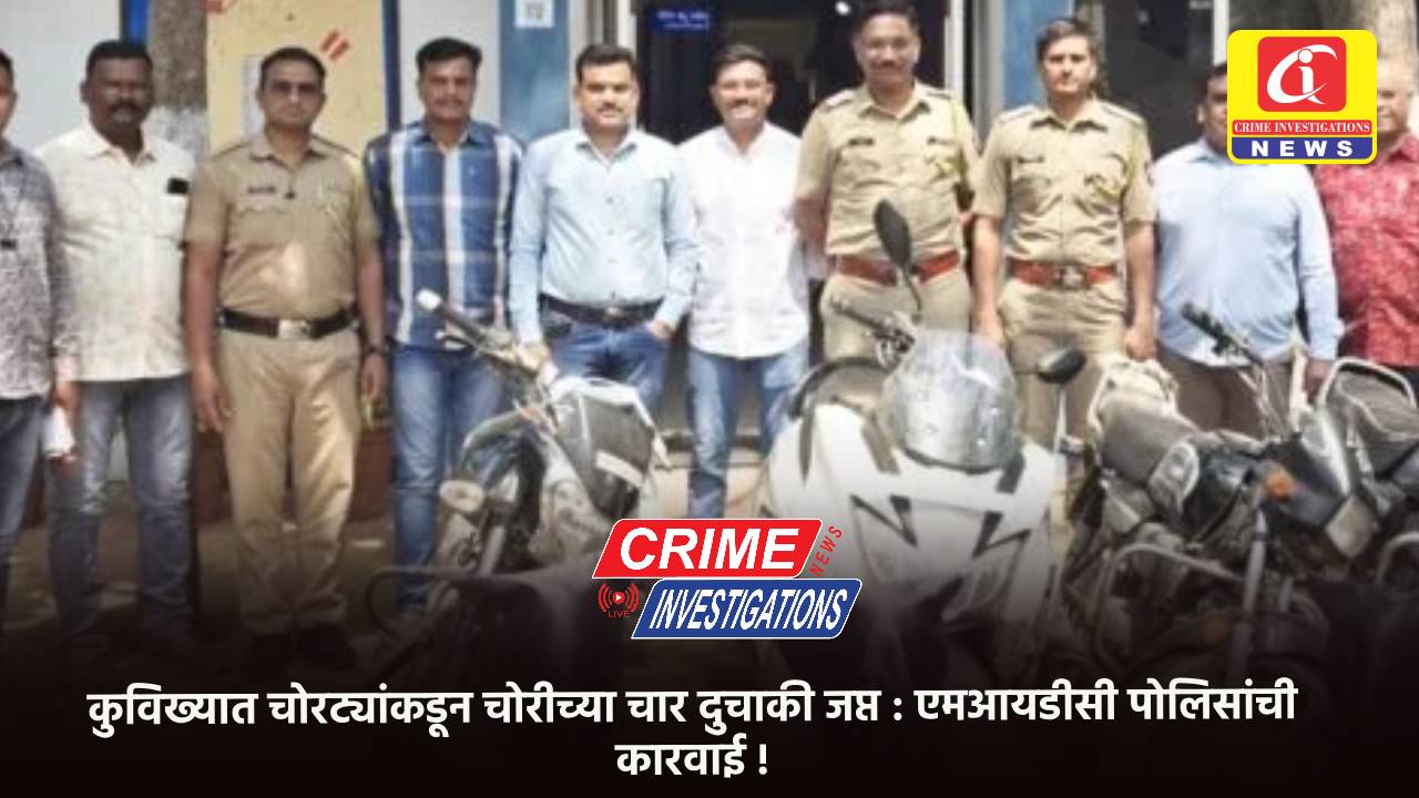 कुविख्यात चोरट्यांकडून चोरीच्या चार दुचाकी जप्त : एमआयडीसी पोलिसांची कारवाई !