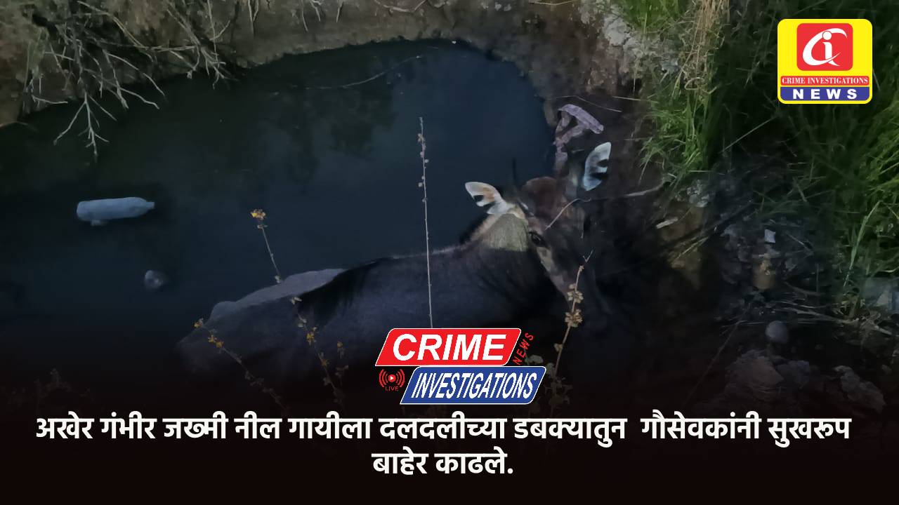 अखेर गंभीर जख्मी नील गायीला दलदलीच्या डबक्यातुन सुखरूप बाहेर काढले असता काही वेळाने नीलगाय ने सोडले प्राण सविस्तर संध्याकाळी दिनांक 17/3/25/ या रोजी नील गाय खोल दलदलीच्या डबक्यामध्ये पडलेली आहे .